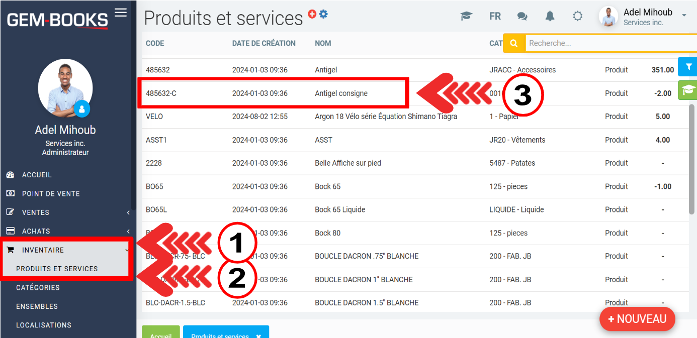 Cliquez sur le menu Inventaire > Produits et Services. Sélectionnez le produit ou le service que vous souhaitez fusionner avec un autre.