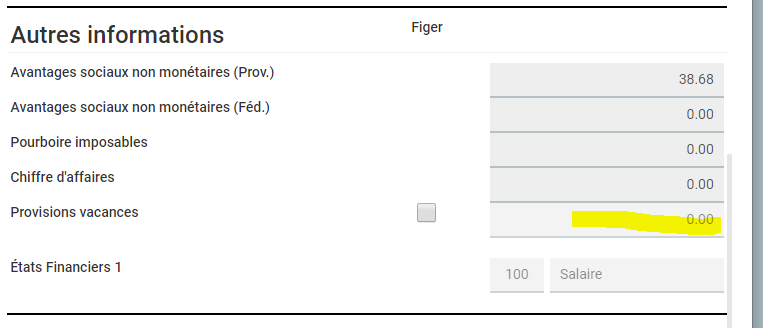 Si vous voulez modifier ce solde (par exemple, transfert de système comptable), alors, allez faire une paye à 0 pour cet employé et inscrivez le montant à ajouter ou soustraire souhaité dans PROVISION DE VACANCES, aucune transaction comptable ne sera faite, mais le rapport de l'ensemble des payes sera modifié.