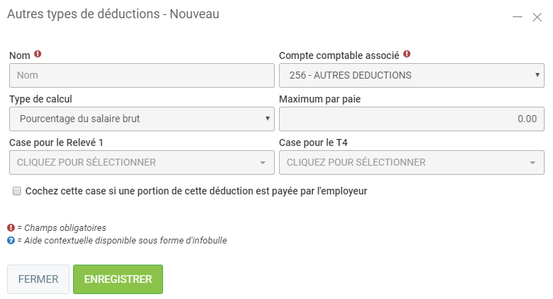 Plus d'informations sur comment configurer les déductions dans l'article suivant : Comment configurer Actif pour produire les paies de mes employés ?