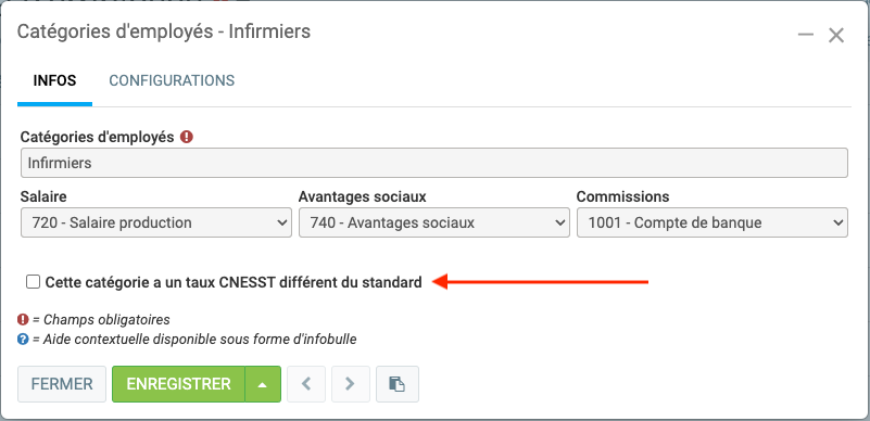 Finalement, dans chaque catégorie d'employés, indiquez le taux s'il est différent du standard.