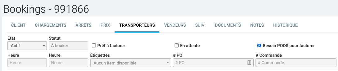 Le PODS, où preuve de livraison peut aussi être attachée à l'envoi. Il y a même une case à cocher sur la fiche du client dans le bas de l'onglet Booking pour vous faire penser que ce client requiert une telle preuve avant de pouvoir le facturer. Vous pouvez aussi ne pas le spécifier pour le client, mais à la demande sur chaque booking.