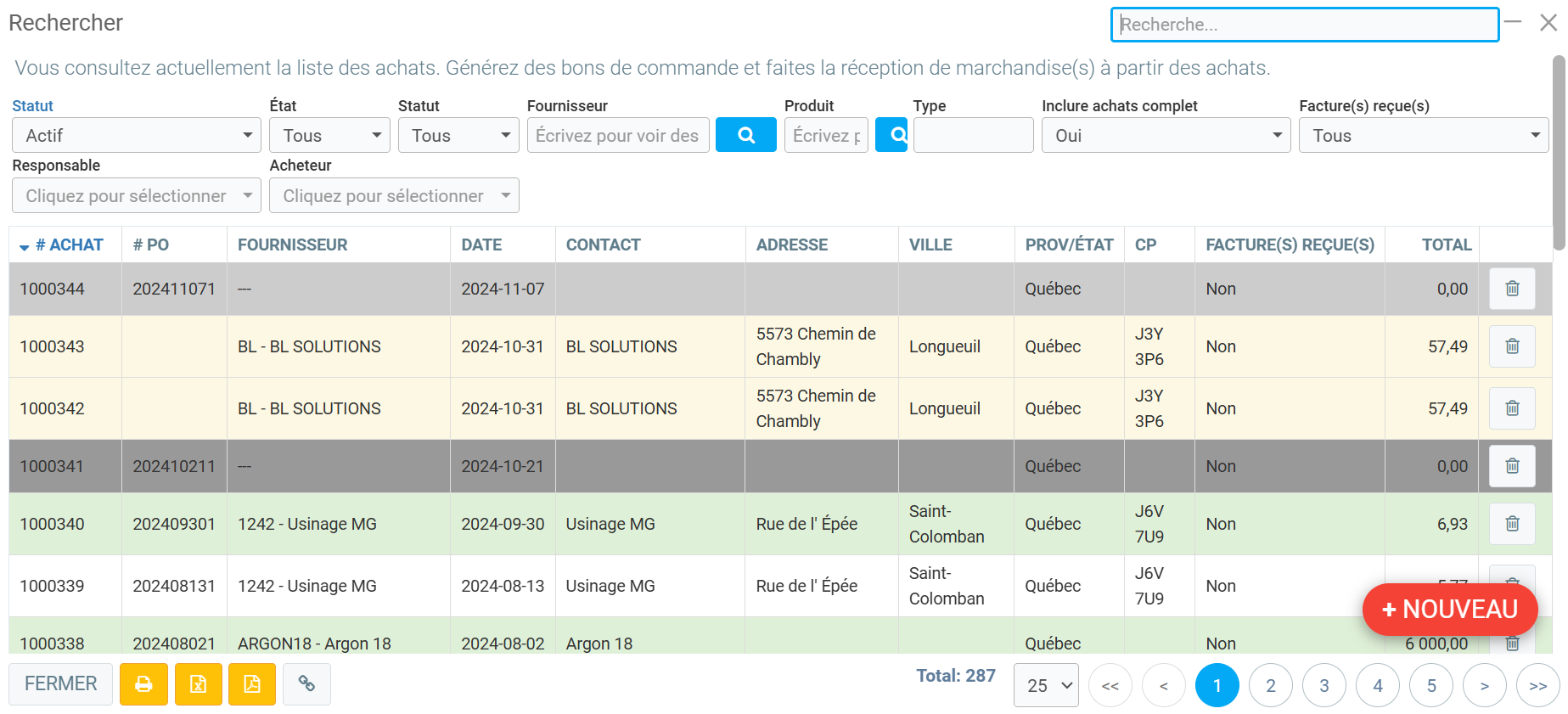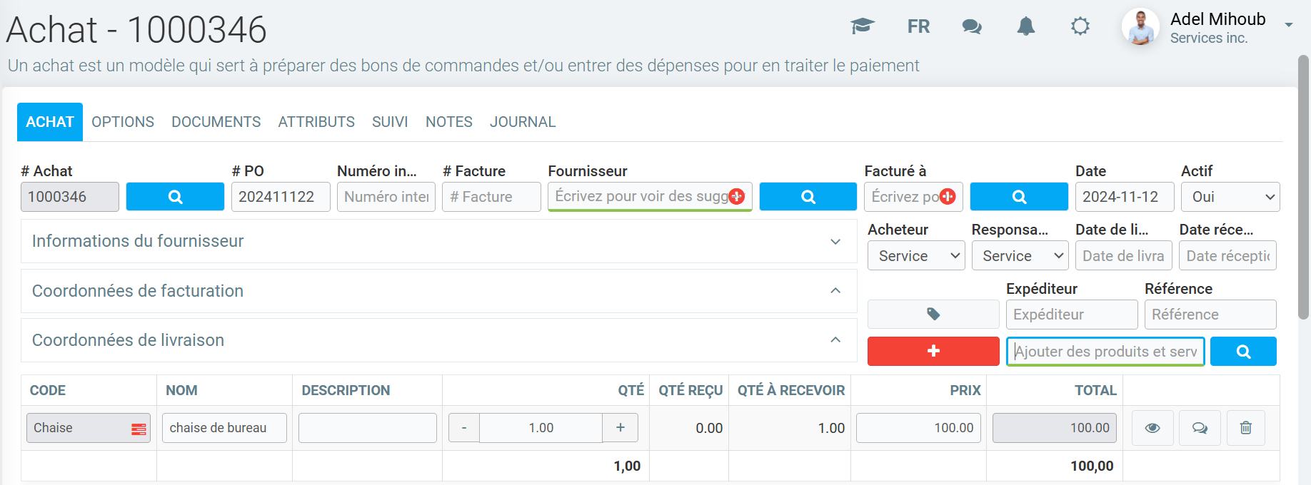 L'achat fera partie de la liste et sera accessible à partir du menu Achats > Achats.
