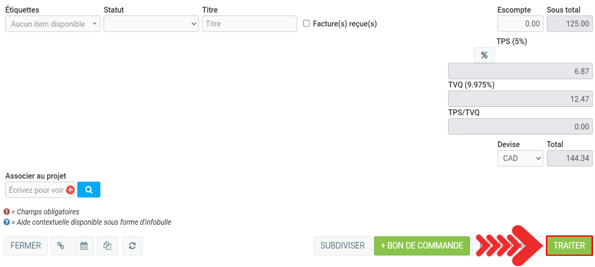 Cliquez ensuite sur Traiter.