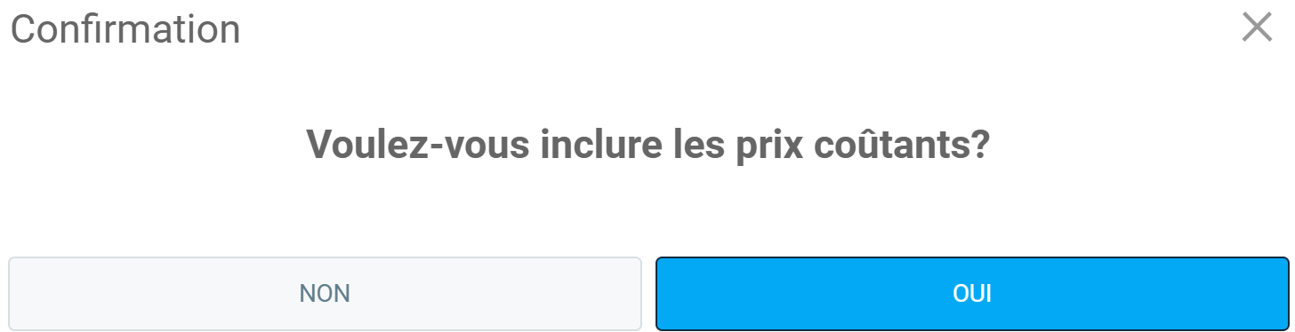 En cliquant sur le bouton + Bon de commande, une fenêtre de confirmation s'ouvre avec le message suivant : ''Voulez-vous inclure les prix coûtants?''. Cliquez sur Oui.
