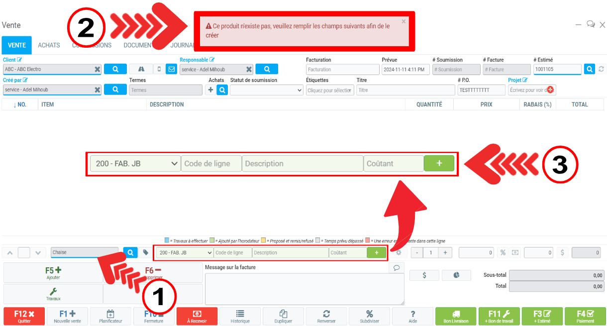 Dans le Point de vente, entrez le nouveau produit dans l'espace situé au-dessus des boutons F5 + Ajouter et F6 - Supprimer.