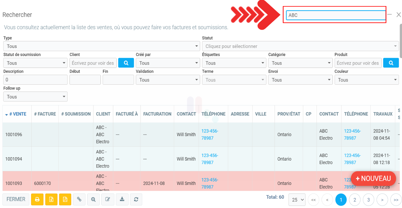 Dans la fenêtre suivante, recherchez le nom du client dans la barre ''Rechercher''.