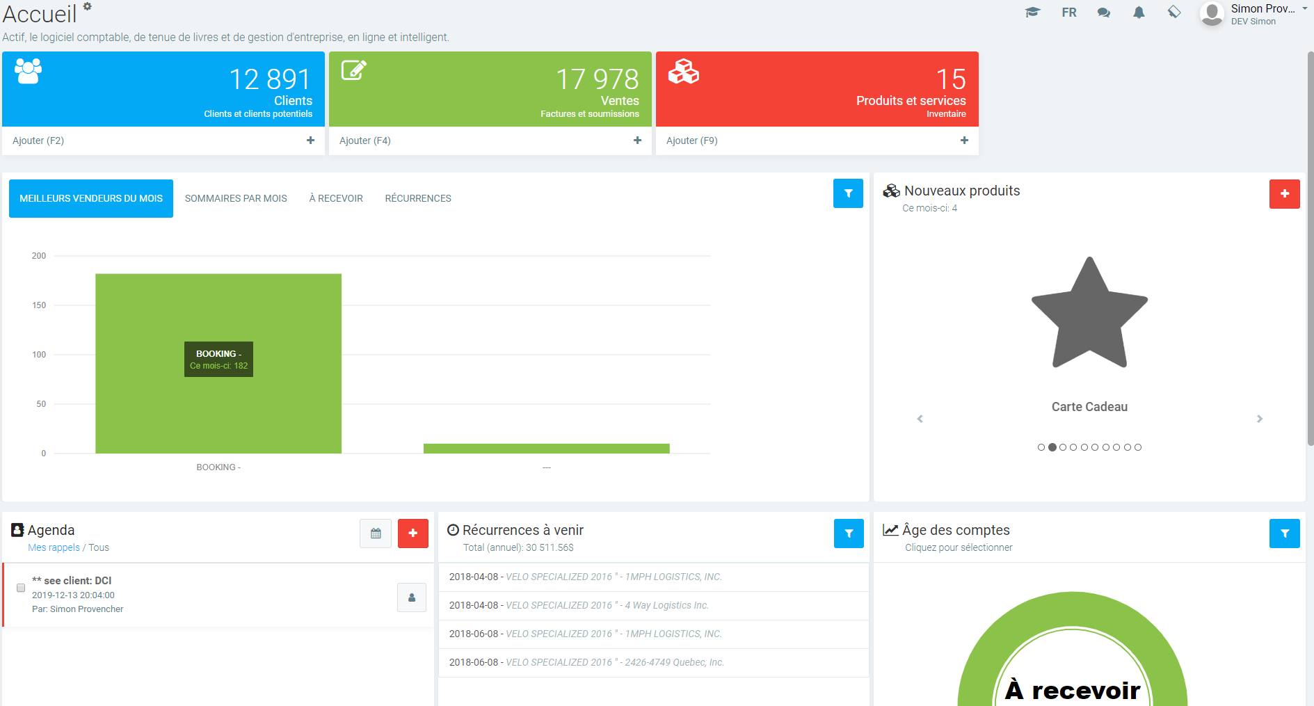 Si vous cliquez sur cette icône, le mode plein écran sera activé. Ce type d'affichage est pratique pour optimiser l'espace d'affichage quand on utilise Actif sur une caisse. Cela permet donc de simplifier l'affichage et de limiter les fonctionnalités nécessaires afin d'opérer la caisse.