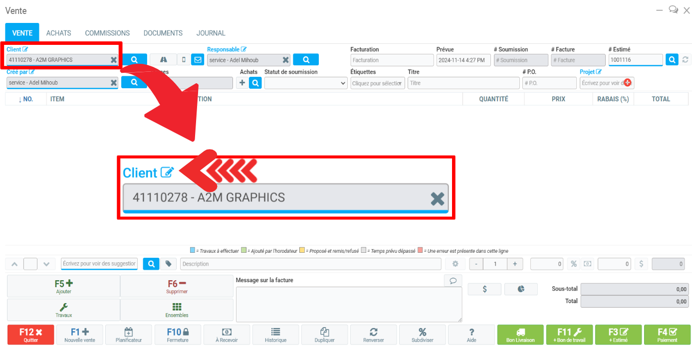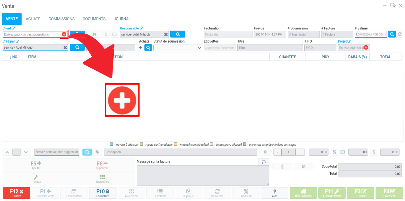 Vous pouvez également cliquer sur le bouton + dans le champ Client.