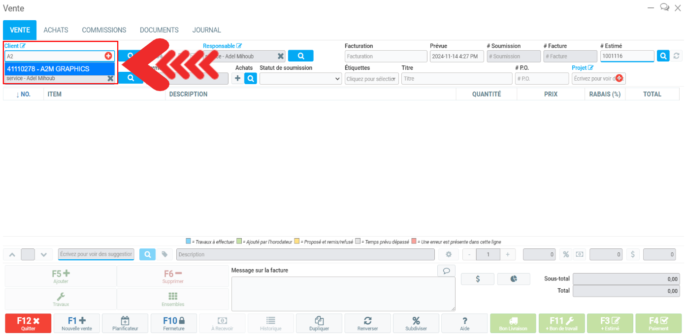 Pour effectuer une vente, il faut débuter par créer un client et afin d'éviter des doublons, il est primordial de d'abord vérifier si le client existe.