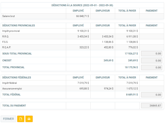 - Au débit: CSST À PAYER (par exemple: 46.46$ )