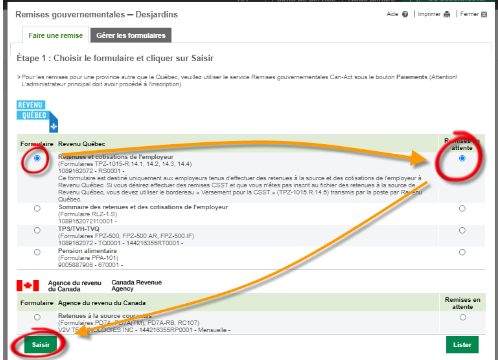 Remise gouvernementale en ligne au provincial: Desjardins