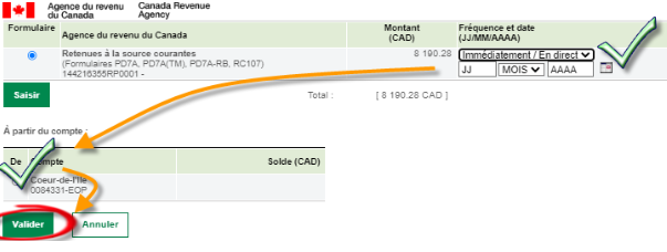 - Validez les montants,
