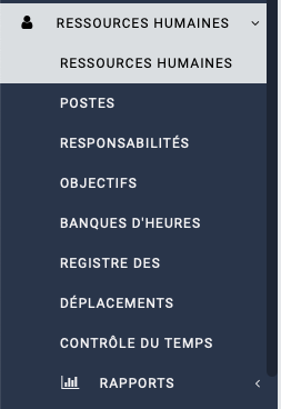Pour ajouter une ressource humaine, vous devez procéder en vous rendant dans le menu RESSOURCES HUMAINES, que vous trouvez dans le menu RESSOURCES HUMAINES.