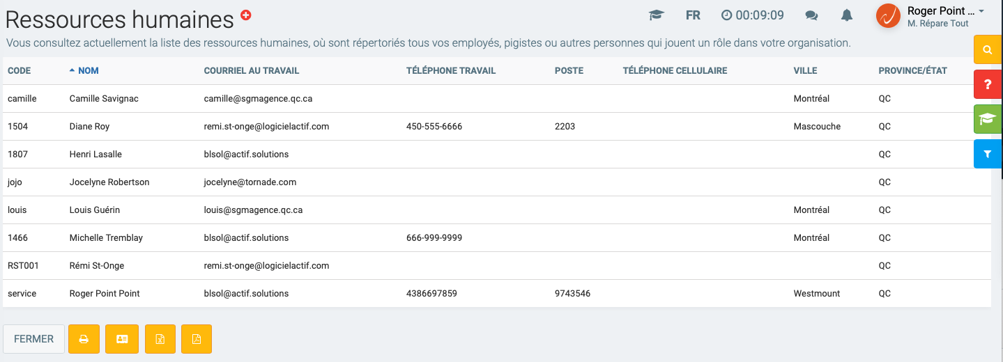 Ceci vous amènera à l'écran la liste des personnes enregistrées en tant que ressources humaines de votre entreprise.