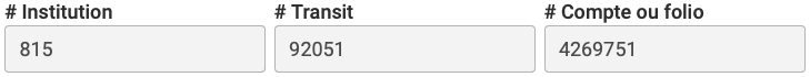- le numéro à 5 chiffres correspondant au transit de la succursale et finalement, dans le dernier champ,