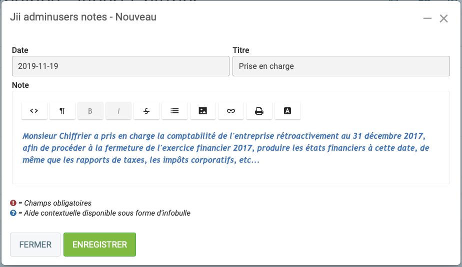 Une fois que vous avez terminé d'inscrire votre note, vous sauvegardez en cliquant sur le bouton