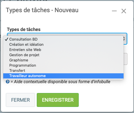 Pour procéder à l'ajout d'un Type de tâche, cliquer sur le logo