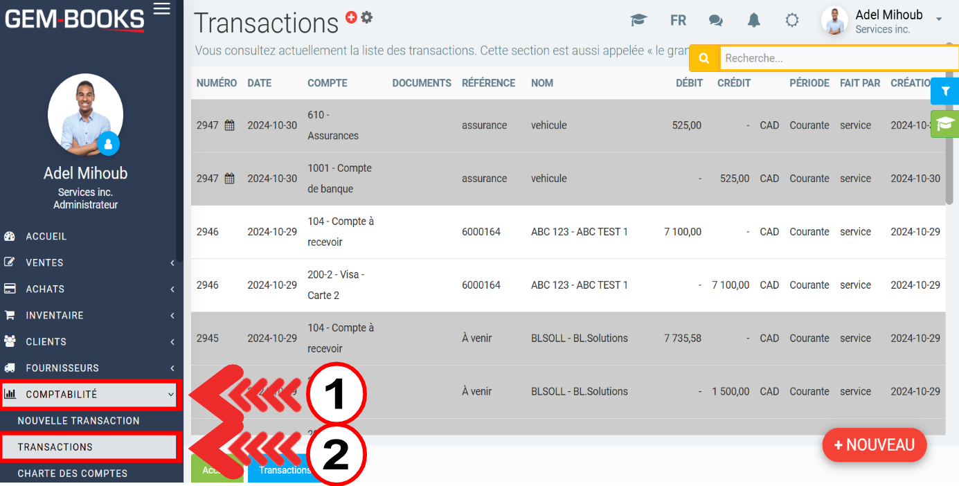 Pour vérifier vos transactions, cliquez sur Comptabilité > Transactions.