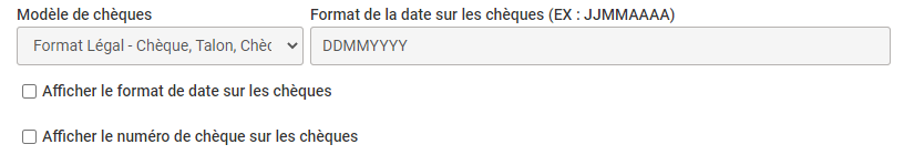 Dans le champ Modèle de chèques, choisissez votre modèle de chèque (par exemple, Légal), et le format de date a affiché sur ceux-ci. Vous pouvez aussi afficher le format de date sur le chèque, si celui-ci n'est pas déjà présent sur vos chèques, ainsi que le numéro du chèque.