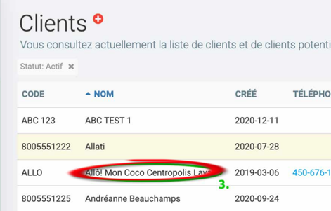 Puis, dans la liste des clients, cliquez sur le client à qui vous désirez envoyer des factures.