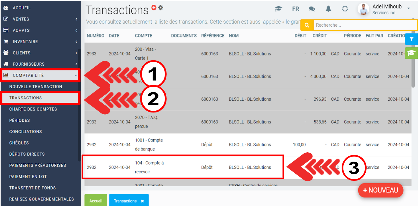Pour ce faire, dans le menu de gauche, cliquez sur Comptabilité > Transactions.