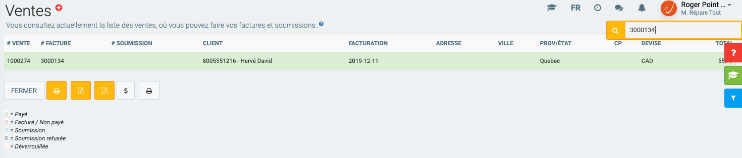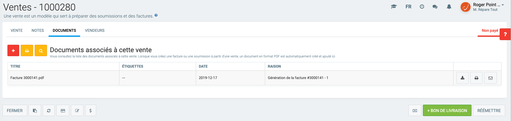 Une fois que vous avez votre Vente à l'écran, il vous suffit de localiser le bouton suivant :