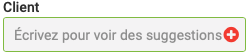Dans le cas où il s'agit d'un nouveau client, vous devrez lui créer une fiche à la volée en cliquant sur le + rouge qui apparaît à droite, dans le champ "Client".