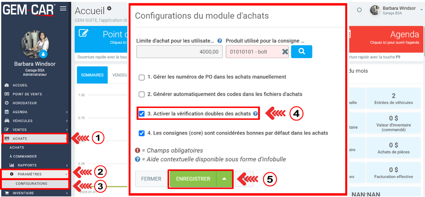 Cliquez sur le menu à gauche: Achats > Paramètres > Configurations.