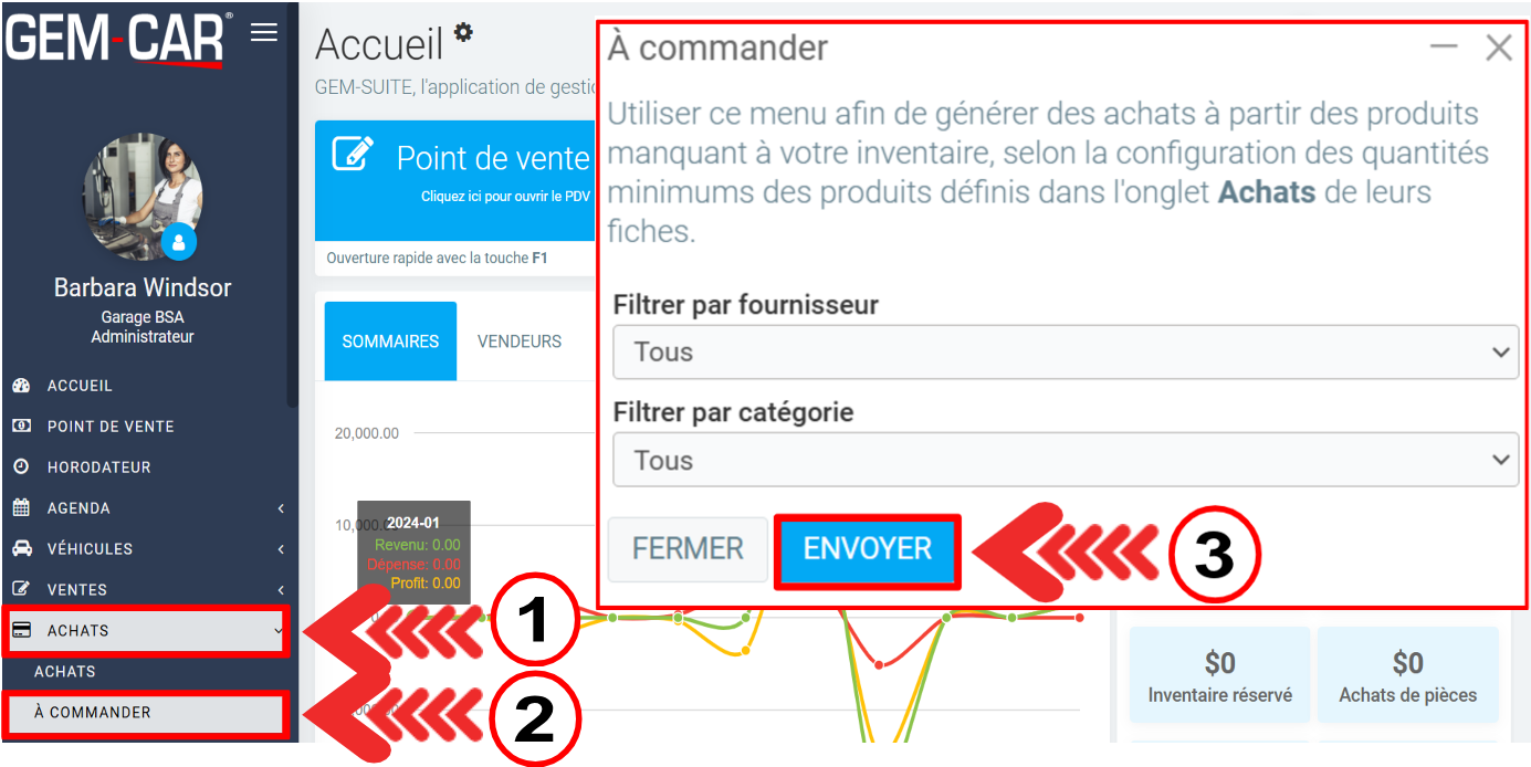 Retournez au menu Achats > À commander. Ensuite, cliquez sur Envoyer.