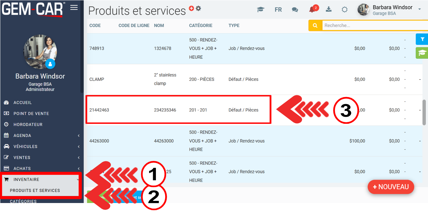 Pour ce faire, allez dans le menu Inventaire > Produits et services.