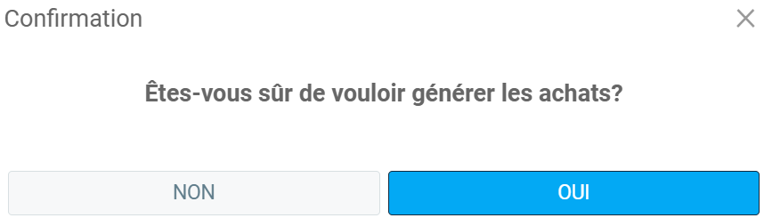 Une fenêtre de confirmation s'affiche avec le message suivant: "Êtes-vous sûr de vouloir générer les achats?". Cliquez sur Oui.