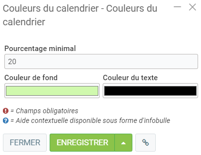 Vous pouvez définir des couleurs en fonction des périodes de temps dans le calendrier.