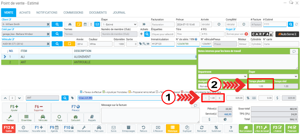 Une fois dans votre estimation, vous pouvez modifier la durée prévue d'un travail en cliquant dessus.