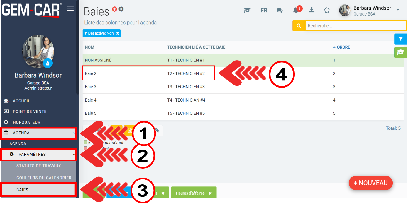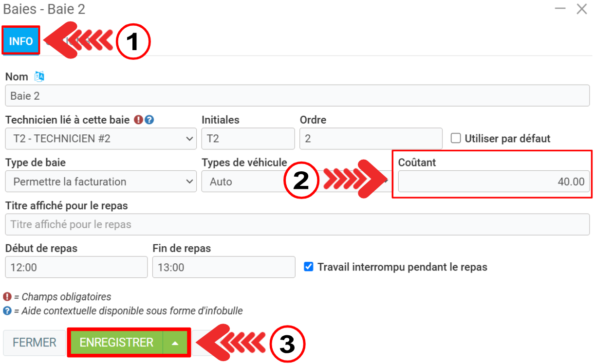 Dans GEM-CAR, il est possible d'attribuer une valeur, le taux horaire à chaque baie, en fonction du type de service effectué, par exemple.