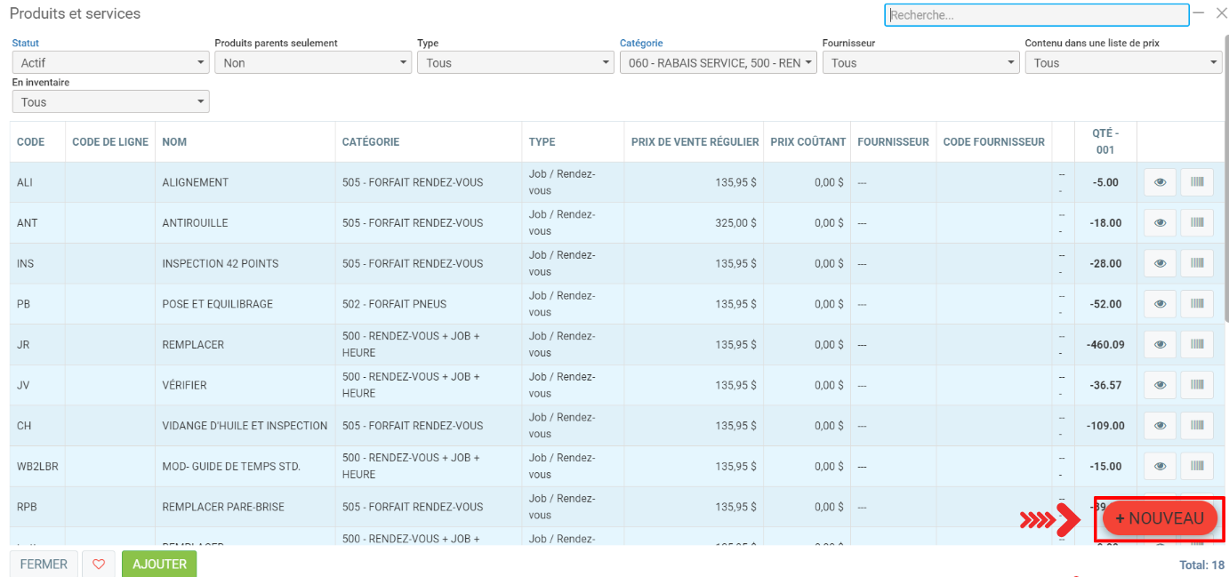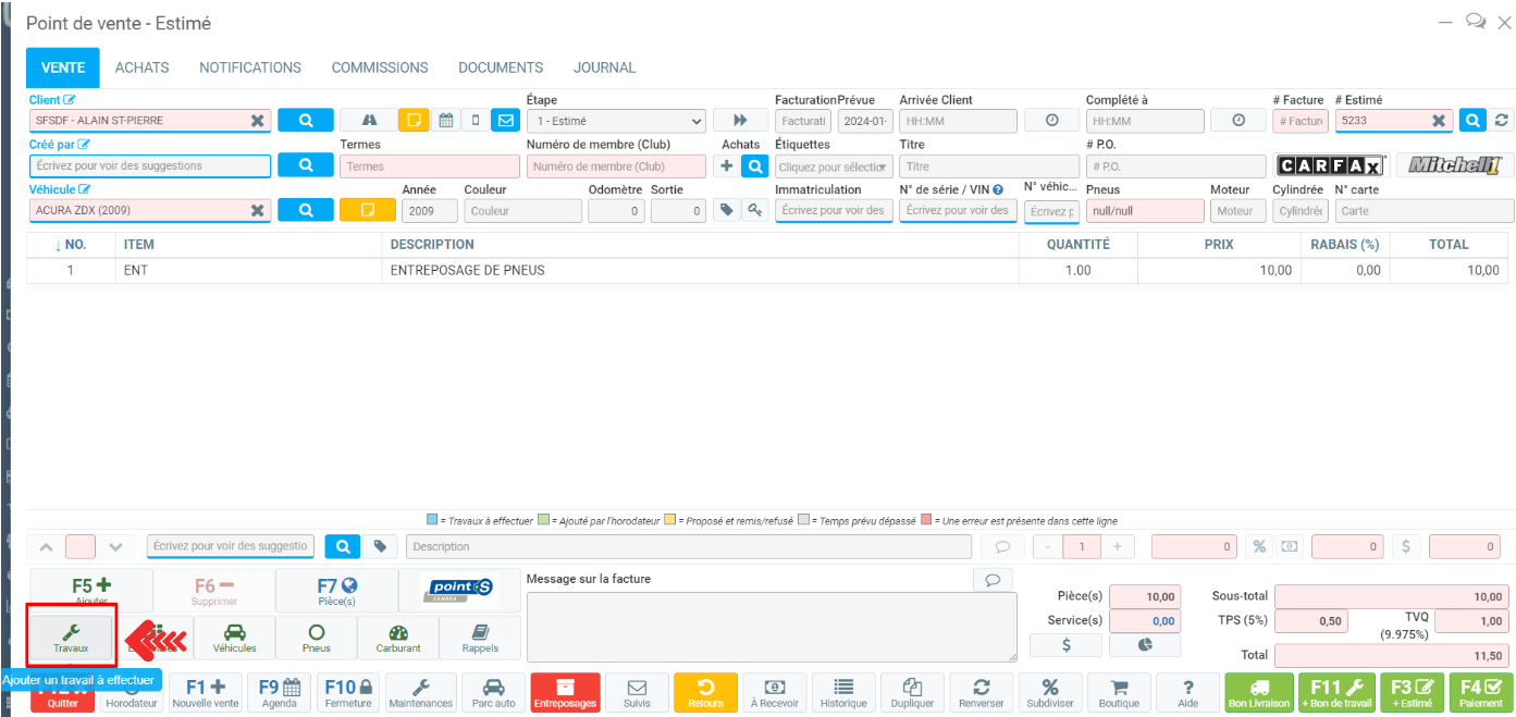 Dans le Point de vente, vous pouvez aussi créer un travail dans votre estimé en cliquant sur la boîte des travaux en bas à gauche de votre écran.