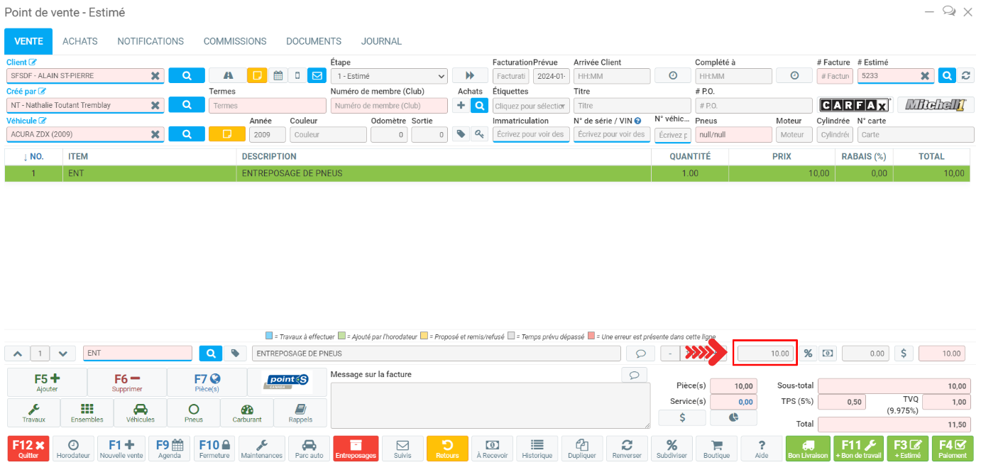 Depuis le Point de vente, il est important de pouvoir modifier rapidement les prix, il suffit de cliquer une fois sur le travail et de cliquer sur le champ du prix.