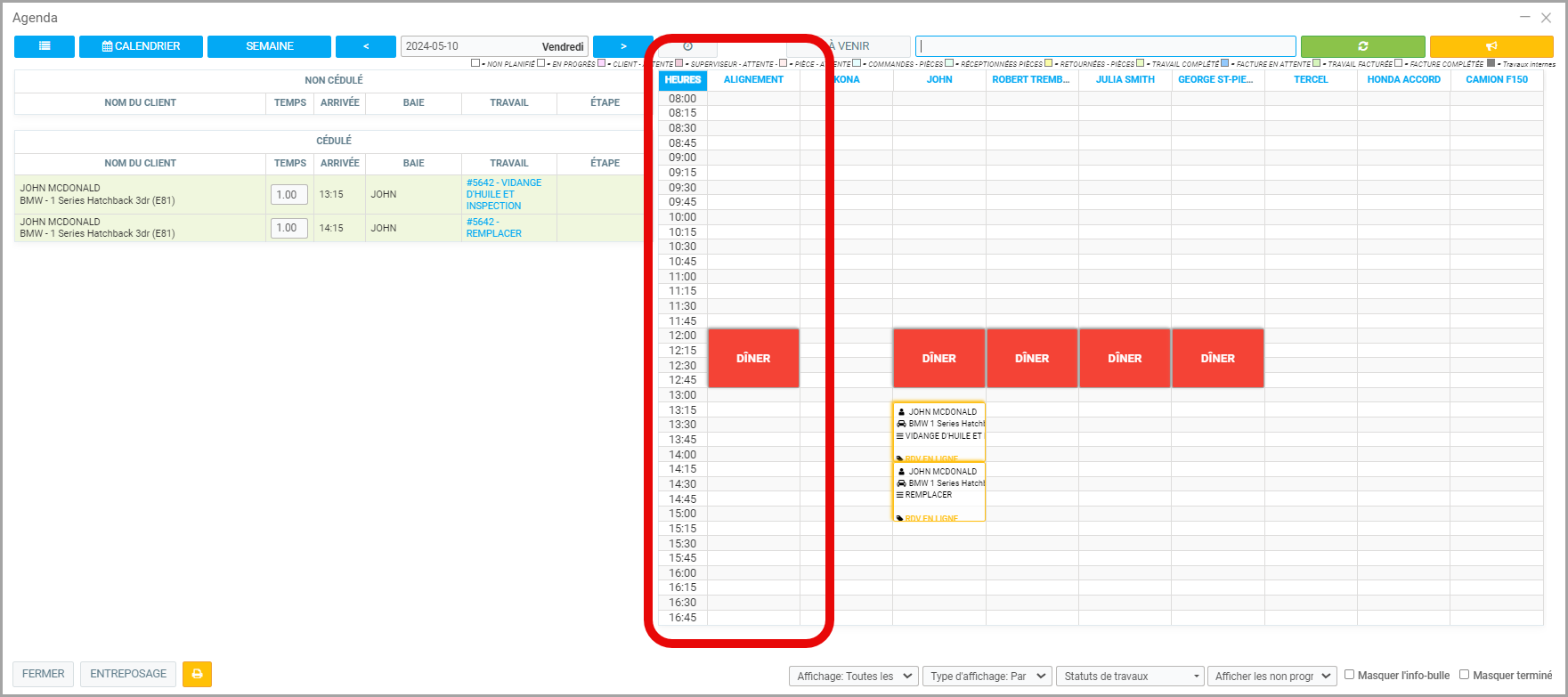 Notez que ces heures d'affaires correspondent aux heures d'affaires que vous visualiserez dans votre Agenda. - Maintenant, visualisez votre Agenda.