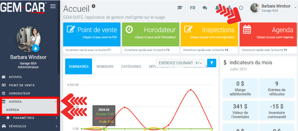 Cliquez sur le menu de l'Agenda ou appuyez sur F9.