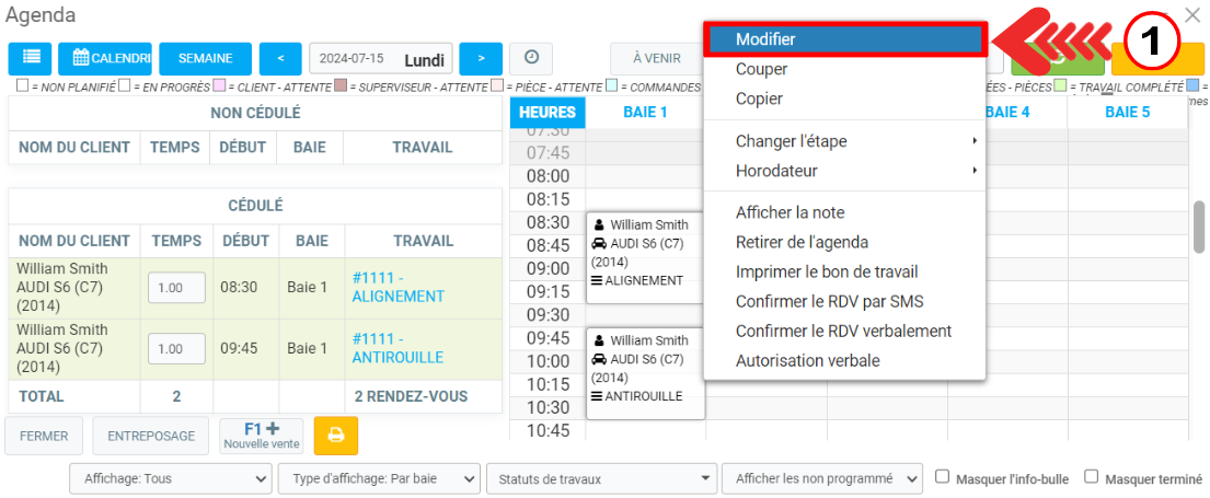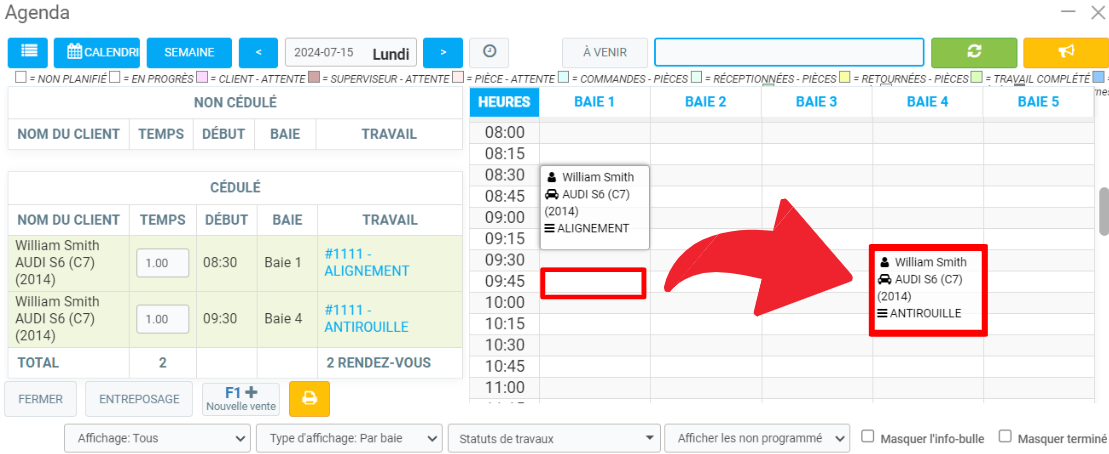 1. Sélectionnez un rendez-vous et glisser le dans une autre plage de horaire.