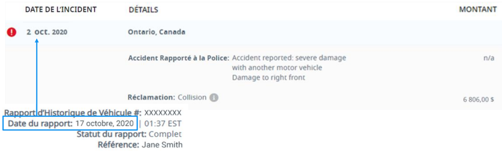 CARFAX - Le rapport d'historique de véhicule - Dates des incidents