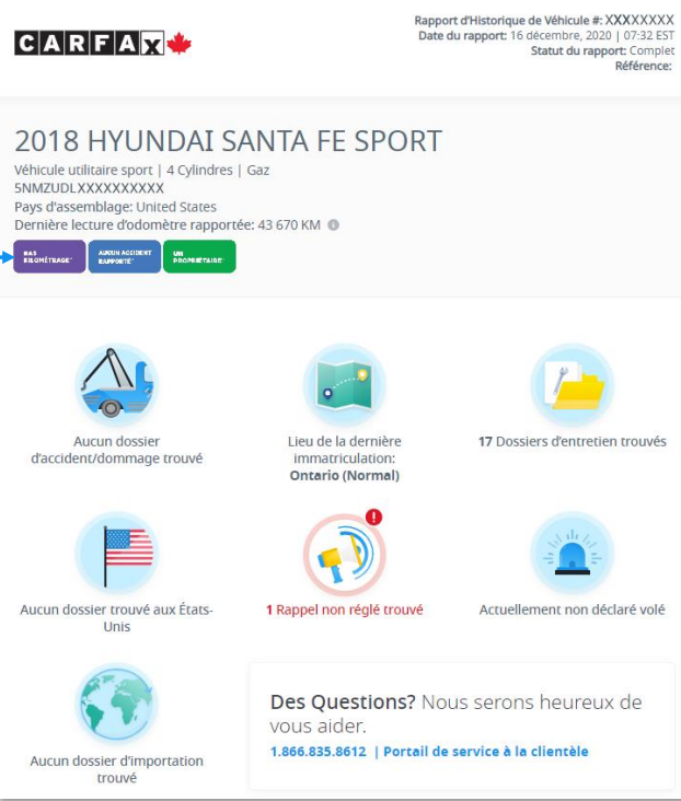 CARFAX - Le rapport d'historique de véhicule - Sommaire du rapport