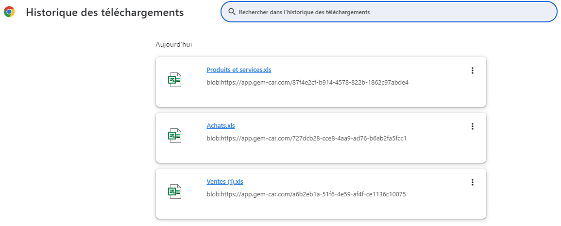 Une fois que GEM-CAR aura complété la création du fichier au format Excel renfermant les données exportées, celui-ci sera déposé dans le dossier "téléchargements" de votre ordinateur, où vous pourrez aisément le retrouver par la suite.