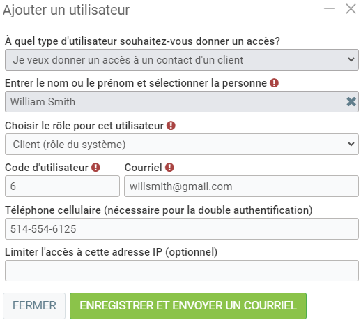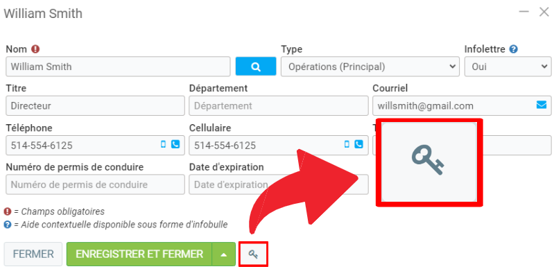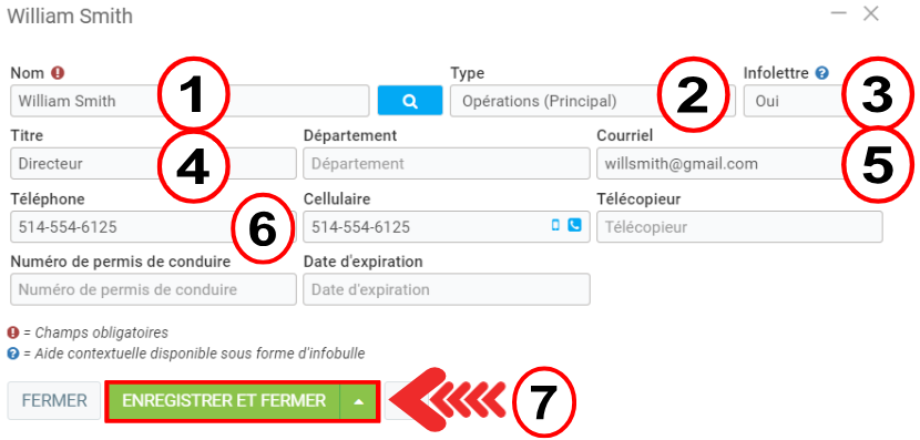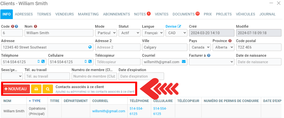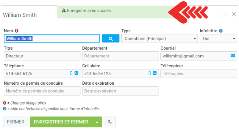 Ensuite, cliquez sur Enregistrer afin de compléter le processus d'ajout de ce contact à votre fiche client.