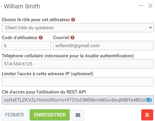 - Clé d'accès pour l'utilisation du REST API.