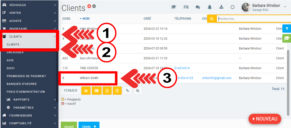 Pour créer un client, cliquez sur le menu de gauche: Clients > Clients > +Nouveau.