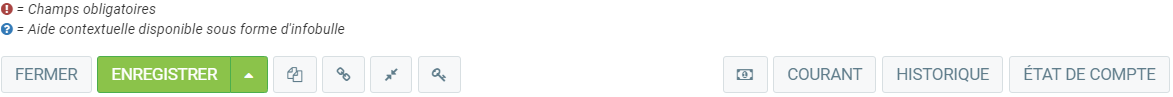 - Pour pouvoir être sélectionné dans Facturé à, un client doit avoir été créé au préalable et l'option "Ajouter au menu déroulant ''À facturé'" doit avoir été sélectionné.