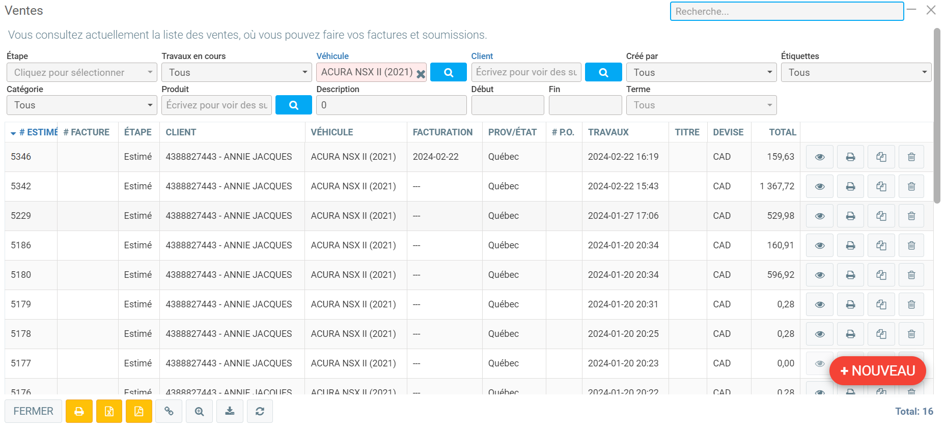Une fenêtre demandera : «Ce client a déjà des ventes inachevées. Voulez-vous les afficher au lieu d'en créer une nouvelle ?» Répondez Oui.