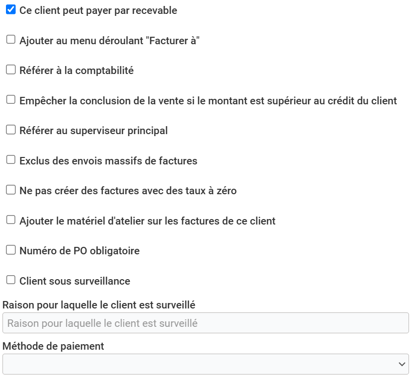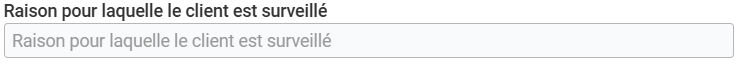 Dans le cas d’un client non solvable ou bien dont la capacité à payer vous inquiète, le troisième champ "Raison pour laquelle le client est surveillé" est fait pour mentionner s’il est nécessaire de surveiller le client.