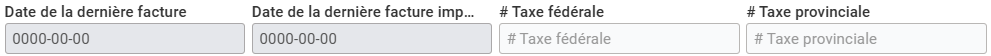 Les champs qui suivent concernent l’historique de facturation et de solvabilité du client. Si vous avez déjà ces informations, vous pouvez les insérer. Il y a d’abord la "Date de la dernière facture". S’il y a une facture non payée, vous pouvez la mentionner dans le champ du milieu, "Date de la dernière facture impayée".