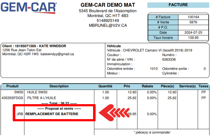 Les items proposés et remis apparaissent systématiquement sur la facture.